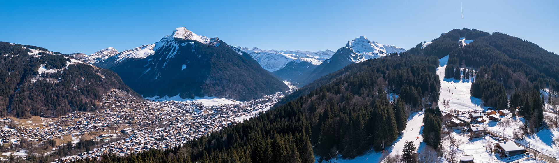Cette station-village est située à 1 172 m sur un col. Depuis ses hauteurs, la vue est imprenable sur le mont Blanc. Ce village de charme marie sports d'hiver et tradition avec des constructions de bois et de pierre et des forêts de sapins. À 400 m des remontées mécaniques et des commerces, la résidence comporte 74 appartements répartis en 4 bâtiments (avec ascenseur) et des chalets mitoyens.